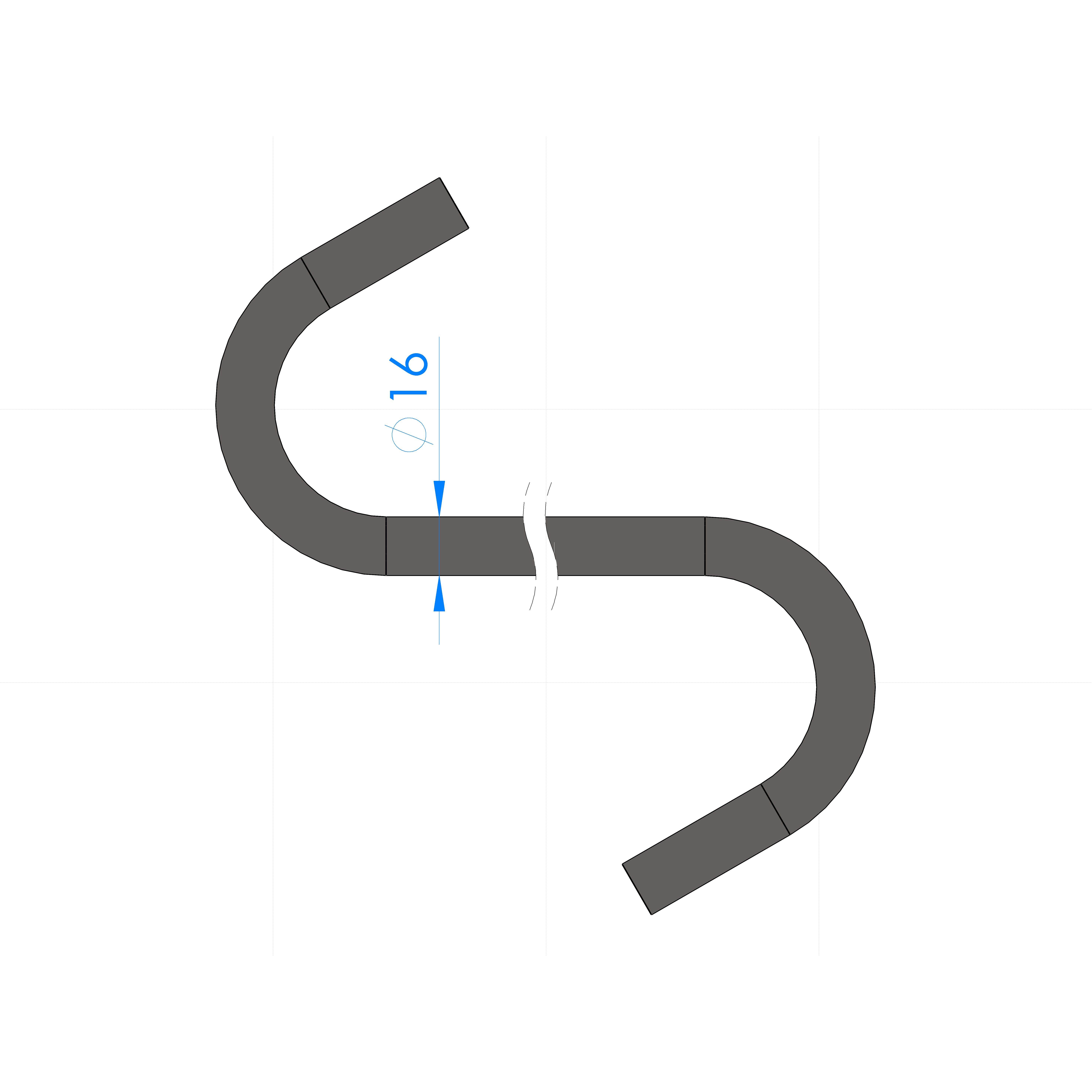 GANCIO ACCIAIO S355 Ø 16 L=700mm, PIEGA TIPO 'C' RUOTATA DI 180°
