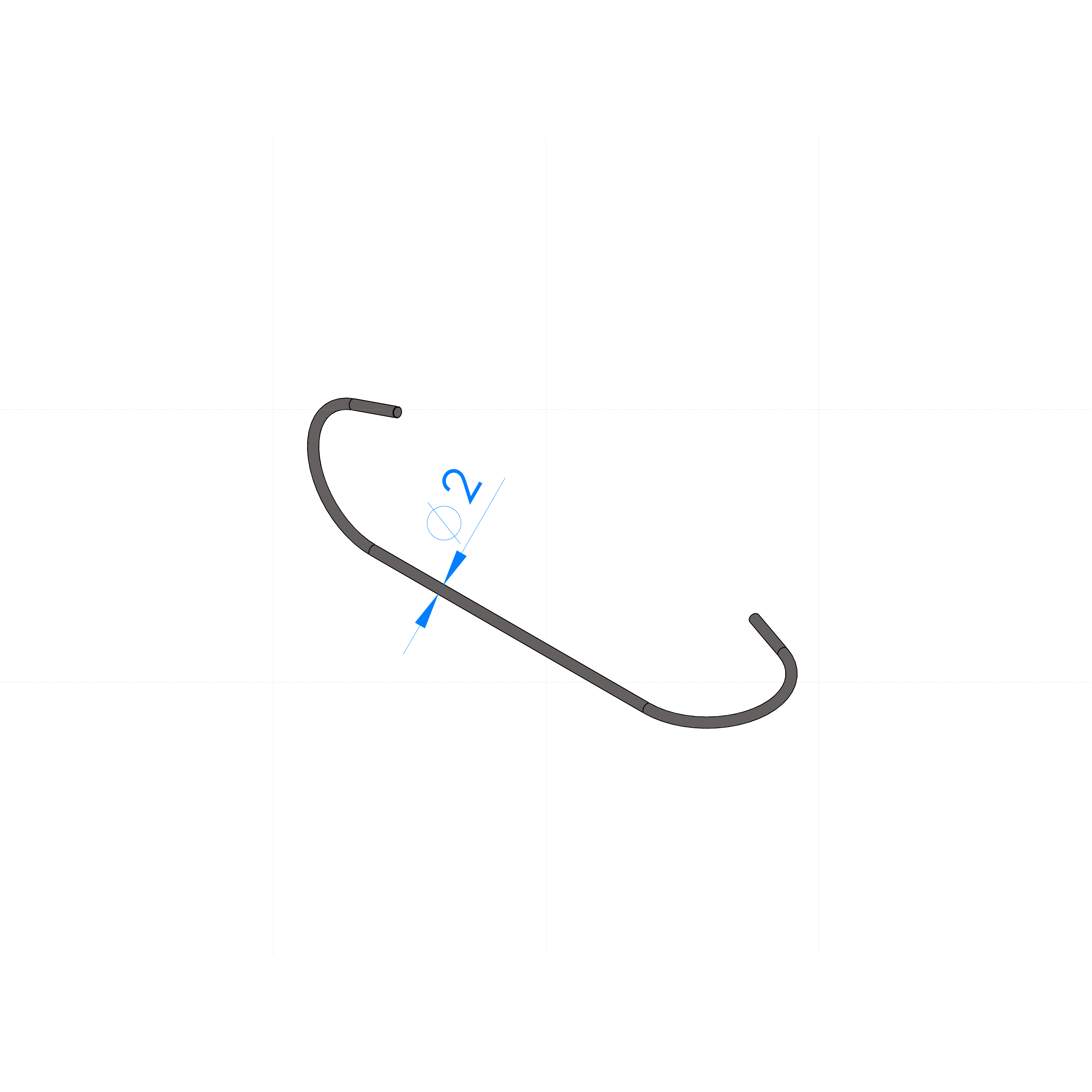 GANCIO ACCIAIO C70 Ø 2 L=300mm, PIEGA TIPO 'CP' RUOTATA DI -90°