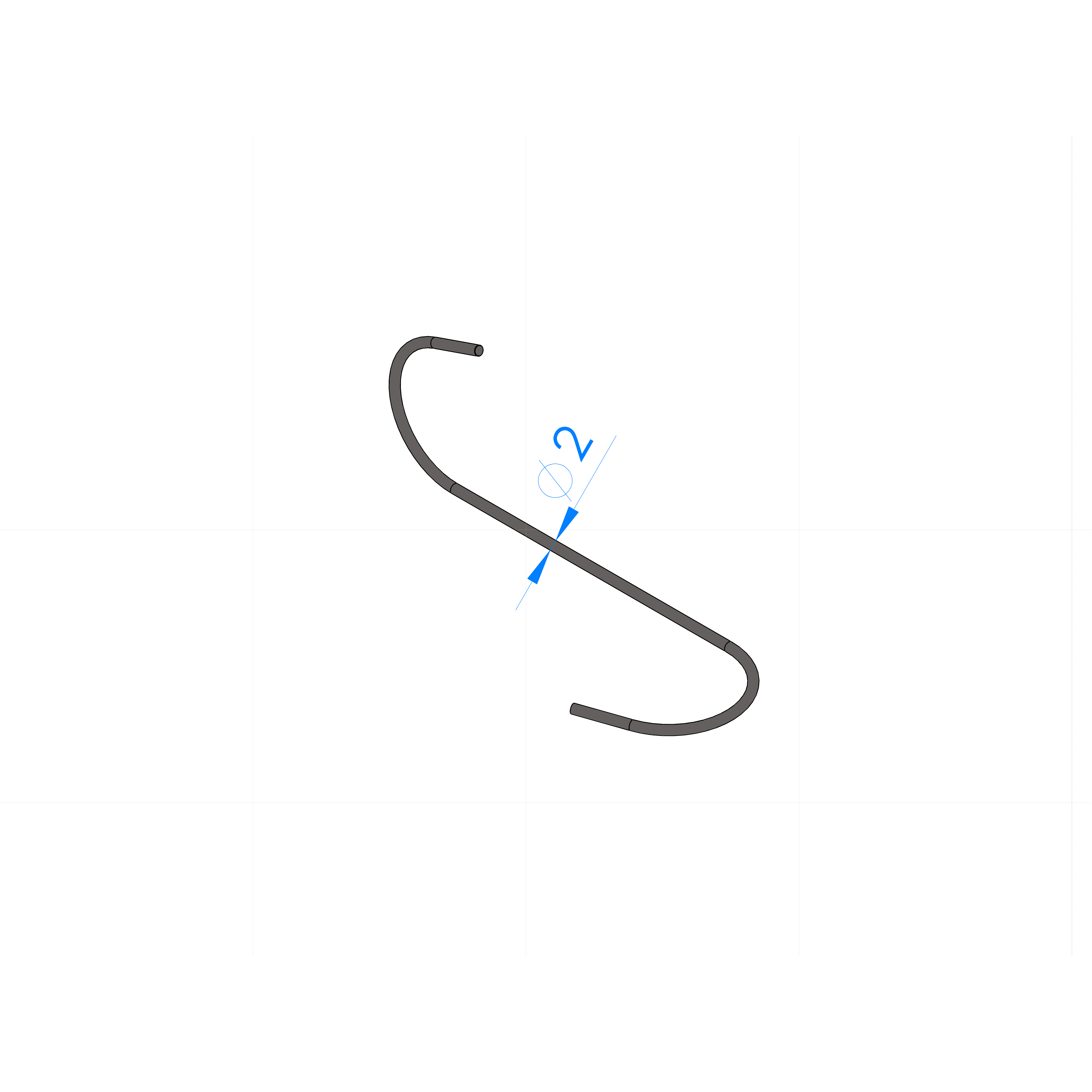 GANCIO ACCIAIO C70 Ø 2 L=360mm, PIEGA TIPO 'CP' RUOTATA DI +90°