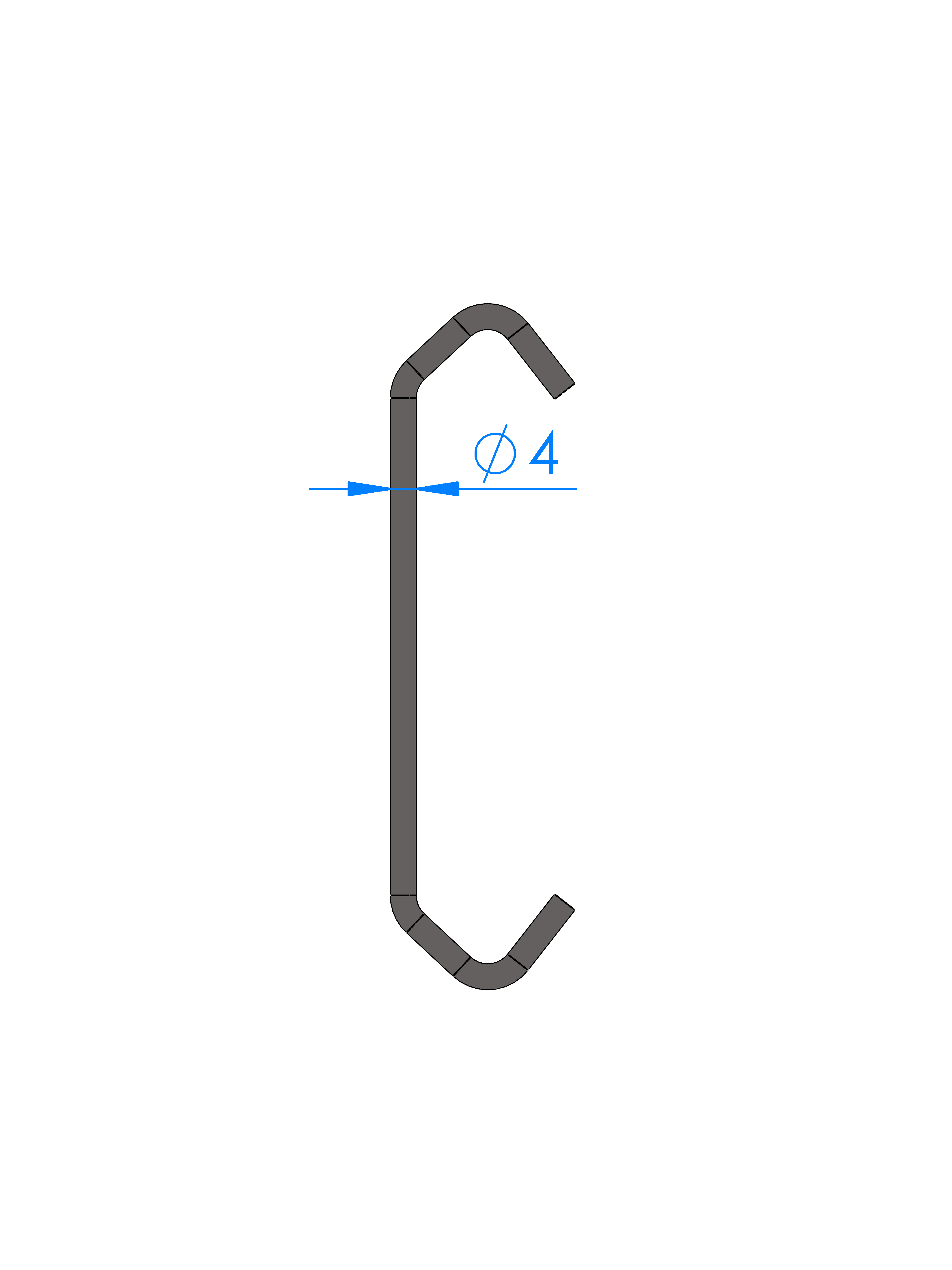 GANCIO ACCIAIO C70 Ø 4 L=800mm, PIEGA TIPO 'V'